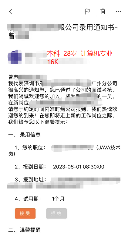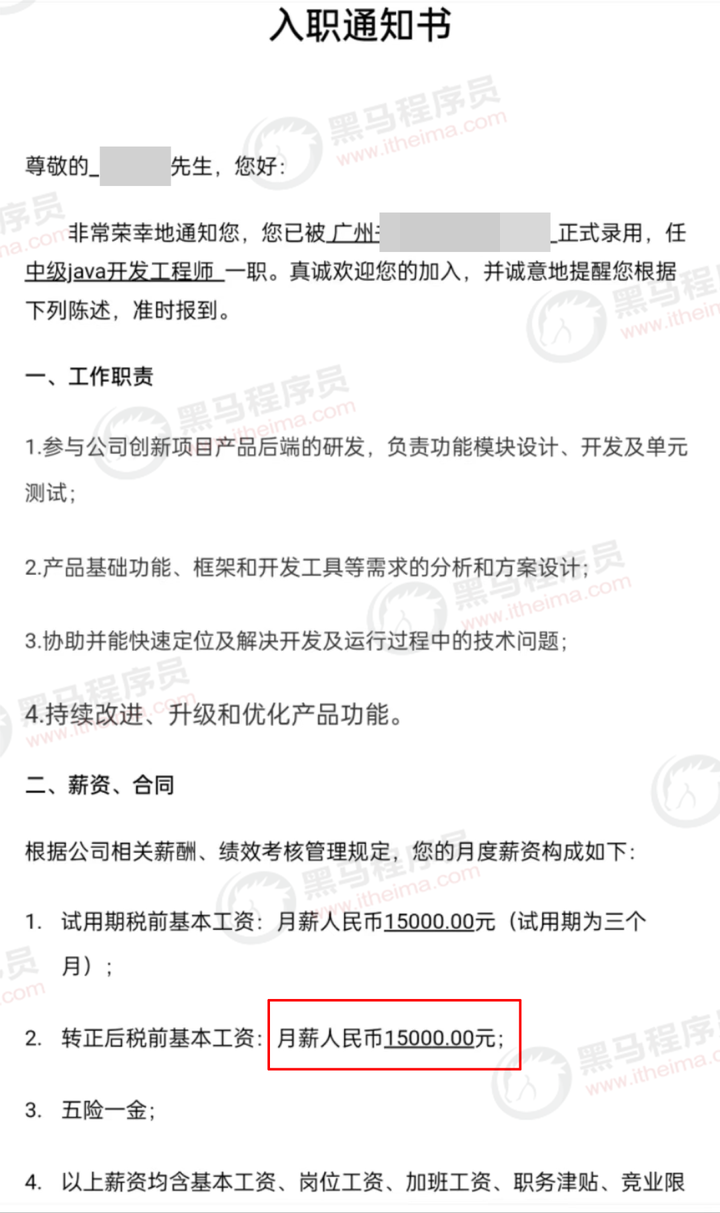因为比较喜欢电脑,在大学期间自学了一点点Java,思索后毅然决定来报名黑马学习,在校他非常用心的学习,面试前也做了充分准备,比如疯狂背面试题,对着镜子练习,经过自身努力成功斩下月薪 15k 的offer。