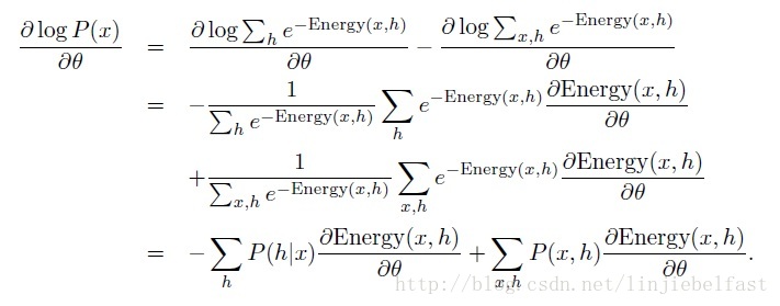 设θ为该能量模型的参数集,该能量模型的训练过程,将不断向着能量减少梯度方向变化参数集θ,最终达到势能最低即稳态,其能量变化趋势是对θ的导数有
