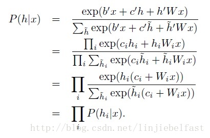 根据该能量函数带入公式(4),计算其P(h|x)为