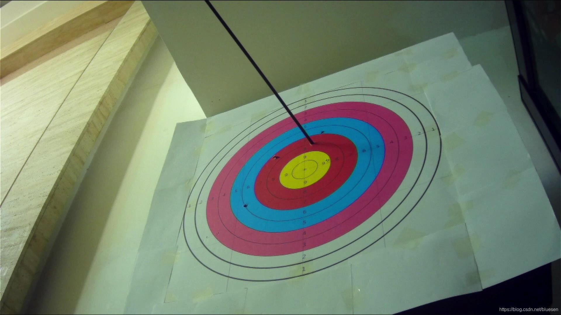 因此,考虑完全使用摄像头程序方式完成,摄像头对准靶面,当有箭射入时,准确判断第几环。