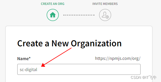 3. 进入创建组织页面,输入组织名称。(这里不需要加上`@`符号)