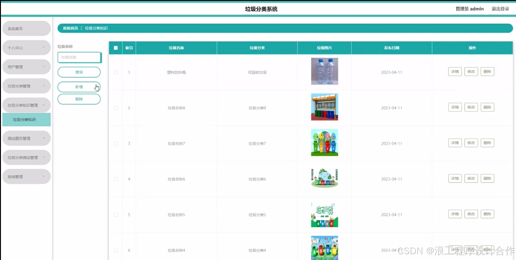 本课题要求实现优质的垃圾分类系统,就一定要包含有前台页面和后端数据库、服务器相联系,从而实现系统的功能运转。系统分为前台用户模块和管理员模块两部分;