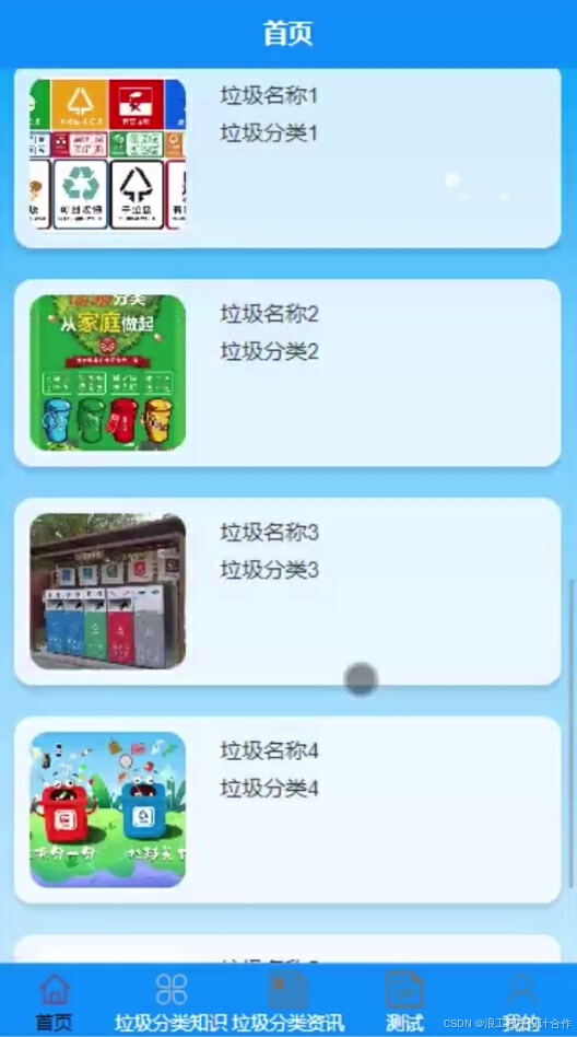 (1)、用户进入系统可以实现首页,垃圾分类知识,垃圾分类资讯,测试,我的,在我的页面可以对我的收藏管理,错题本,垃圾分类测试列表,测试记录等进行管理。用户用例如下: