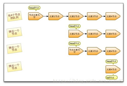 入队列就是将入队节点添加到队列的尾部。为了方便理解入队时队列的变化,以及head节点和tair节点的变化,每添加一个节点我就做了一个队列的快照图。下图来自并发编程网: