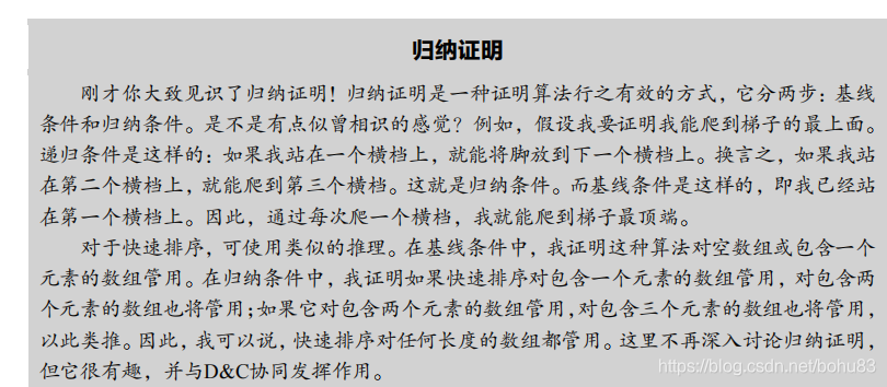 知道吗?最佳情况也是平均情况。只要你每次都随机地选择一个数组元素作为基准值,快速排序的平均运行时间就将为O(n log n)。快速排序是最快的排序算法之一,也 是D&C典范。