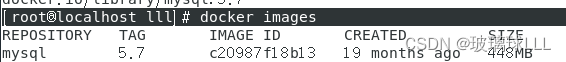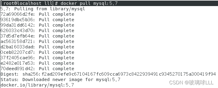 安装镜像:[root@localhost lll]# docker pull mysql:5.7