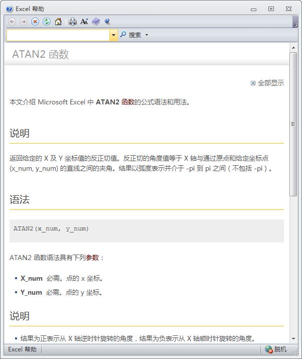 atan2 ,倒算 tan,输出范围 是 -pi 到 pi注意看 不同IDE下面的 y x 输入!!!matlabVC装13的微软就excel和其他不一样,爱玩个性化,不知道 ios上的这个函数是怎样的,有朋友知道告诉我下