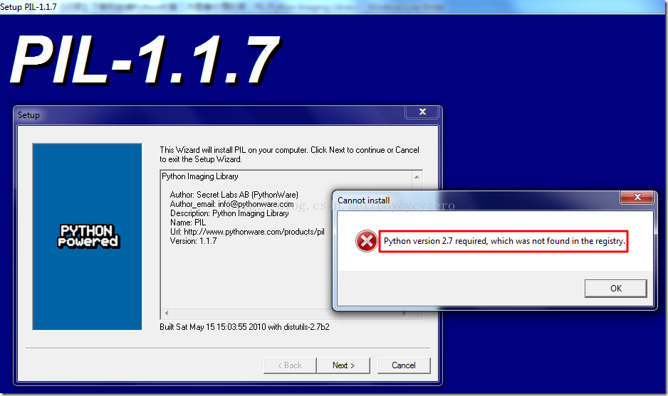 于是到 PIL官网 下载一个,python imaging library 1.1.7 for Python 2.7 (windows only)。