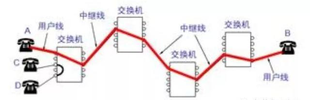 电路交换首先在发送端和接收端建立连接,然后将报文传输过去,最后释放连接。电路交换的三个阶段:建立连接、通信、释放连接。电路交换中通过交换机实现两个节点之间的通信。电信网络(电话网)使用的电路交换。