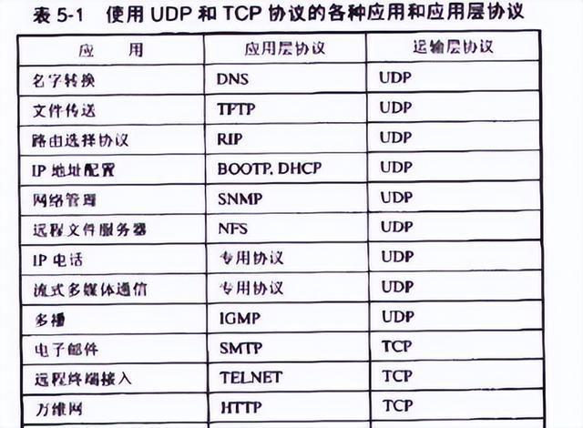 应用层和应用层协议主要使用的运输层协议(UDP或TCP)如下表所示