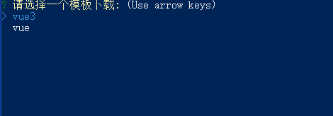 当type类型为list时,命令行窗口输出一串列表提供给用户选择.用户可以敲击键盘上下键选择不同答案,选定后按下enter键确认答案.