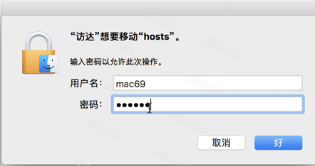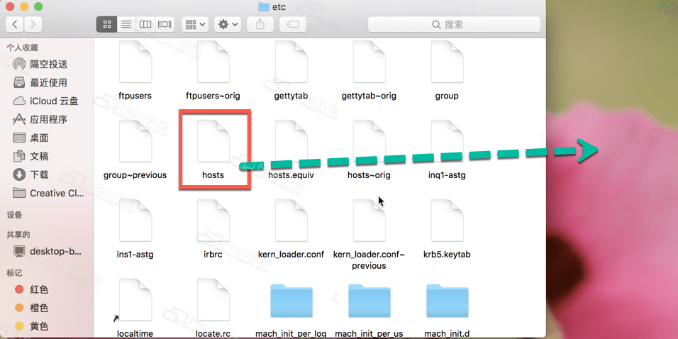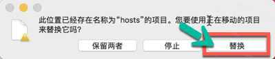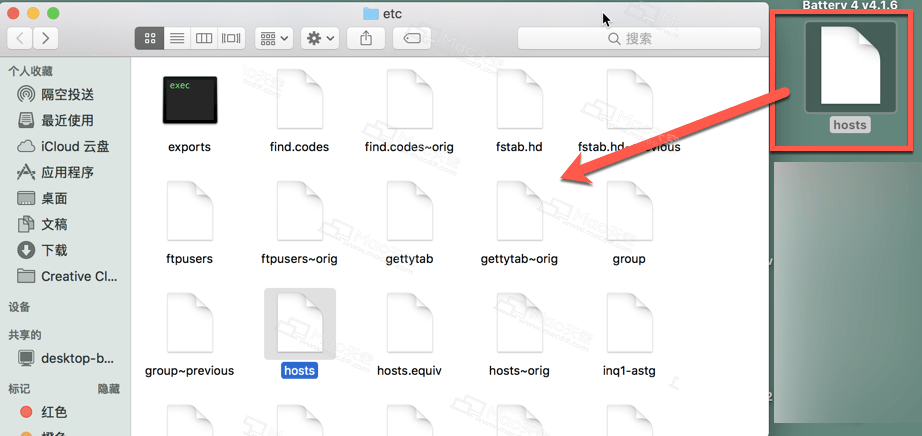 现在将修改的好的hosts文件拖回到etc文件夹中。