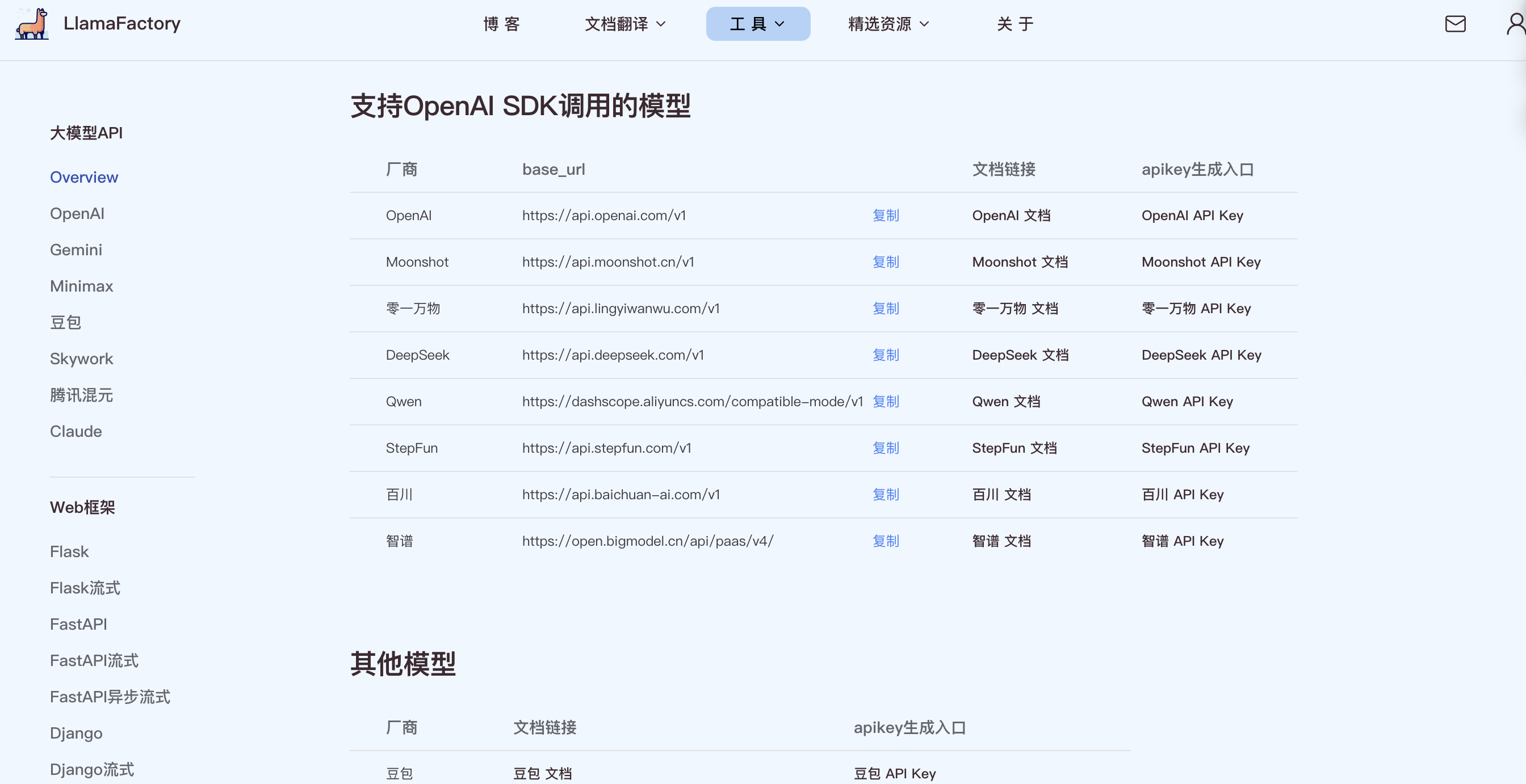 一站式大模型API速查宝典:为开发者整理的多平台调用资源 在大模型百花齐放的今天,开发者往往需要花费大量时间在不同平台间切换,查找文档、对比接口。为了解决这个痛点,我们创建了一个集成了各大模型平台API信息的速查资源。这包括了从OpenAI到Gemini,从百川智能到腾讯混元等主流大模型平台的调用信息,全部集中在一处,方便开发者快速查找和使用。