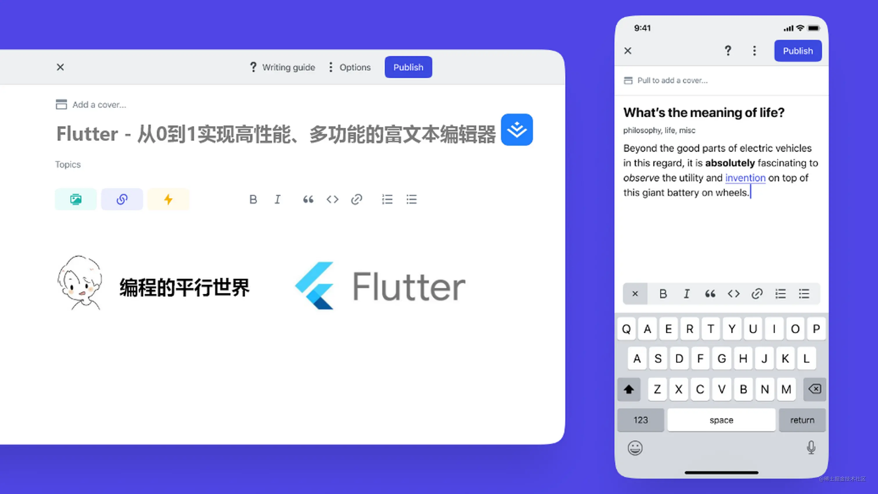 在这篇文章中,我们实现了将文本与图片混合编辑的功能,其他需要插入的模块也能举一反三实现,例如插入视频。本专栏实现的富文本编辑器对于真实的复杂需求也只是一个小玩意,也有着较多的缺陷,依靠我一个人的力量也是很难实现标题中说的《高性能、多功能的富文本编辑器》,本专栏旨在于引领大家走入Flutter富文本编辑器的世界,而不单单只是学会使用已有的插件,却不了解其中的实现原理,当然这是一个超级大坑🤣。例如文本与图片的排版问题…这些缺陷都需要很多的时间一点点处理解决,也希望在将来能有更多的朋友与我一起探索文本的世界。而在后续的系列文章中,将会把富文本更加的完善,完成一个笔记的Demo,也会有对富文本性能的优化与分析。希望这篇文章能对你有所帮助,有问题欢迎在评论区留言讨论~