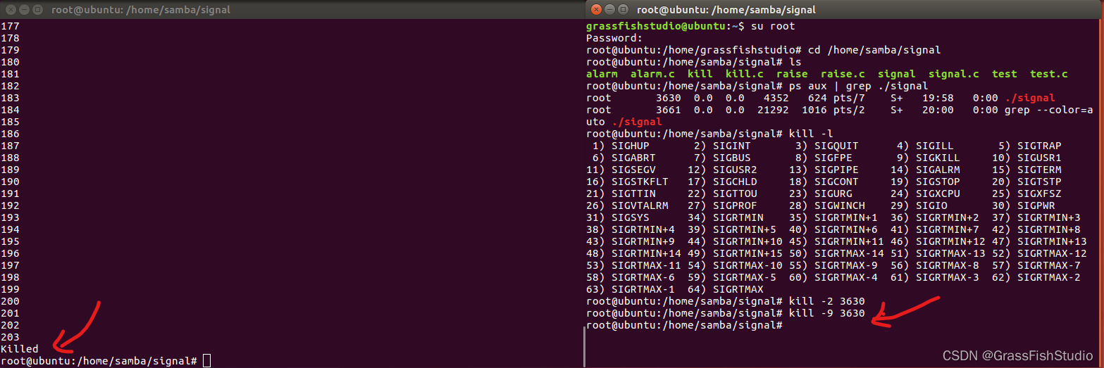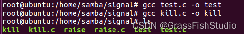 b.由于我们在运行kill时需要输入pid号和信号,我们不知道test进程的pid号,所以先运行test使用ps aux | grep ./test查询
