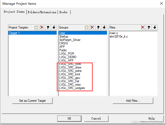 (1)在工程新建一个lvgl文件夹,里面包括这几个文件