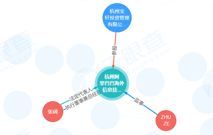股东信息显示,该公司由阿里巴巴旗下杭州宝轩投资管理有限公司全资持股。杭州宝轩投资管理有限公司对外投资的企业则包括了钉钉、高德等,显示这家公司为阿里系企业。