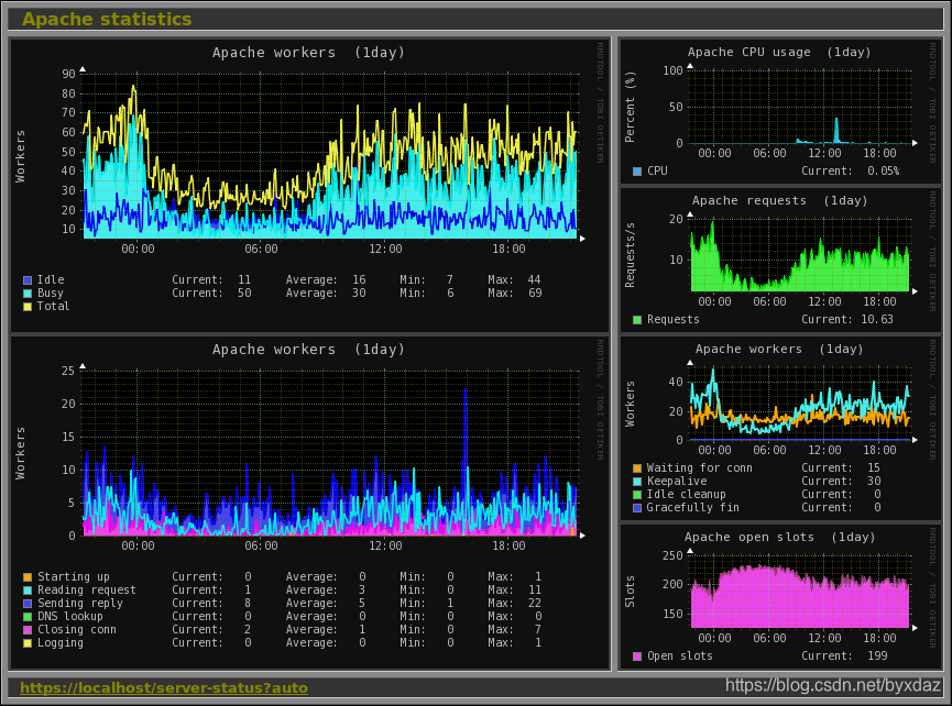 配置文档默认是在/etc/monitorix/monitorix.conf,根据自身需要配置之。参阅官方文档。服务开启后默认监听的是8080端口,这个端口若已经占用,可以更改配置文件中的http_builtin节中的port属性。另外,高版本的monitorix可以使用内置的perlCGI服务器module,可以不再配置apache httpd这类托管软件。