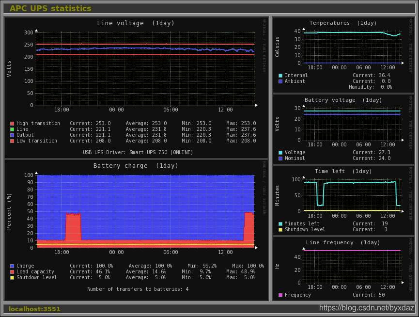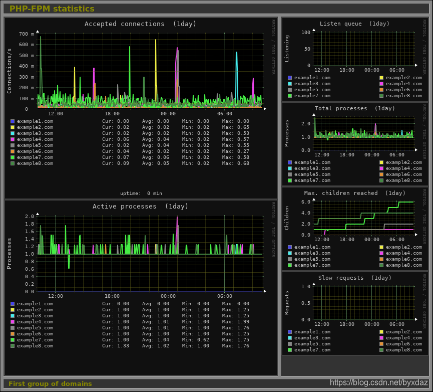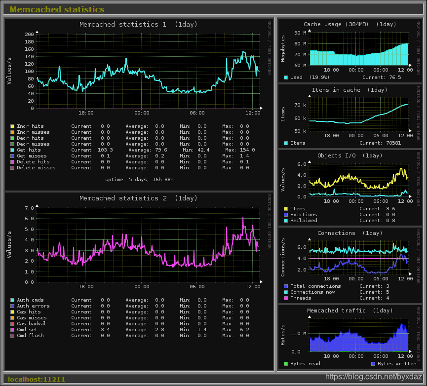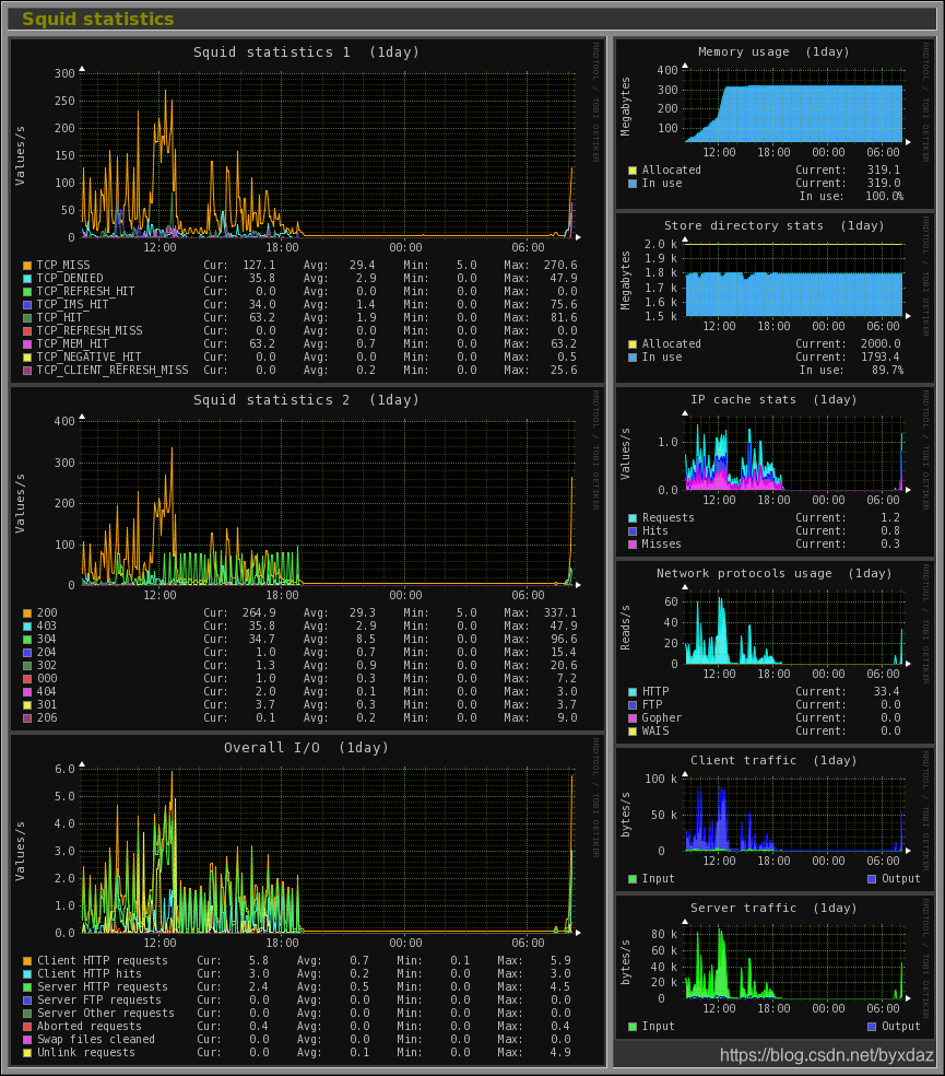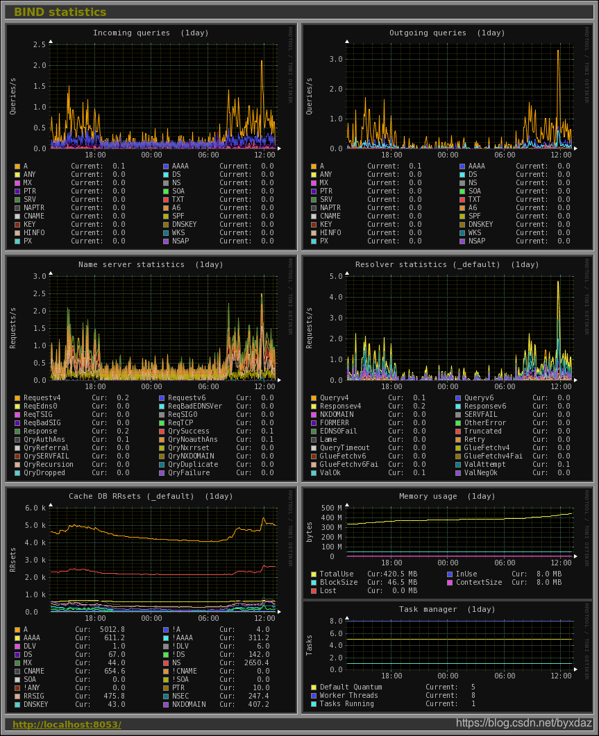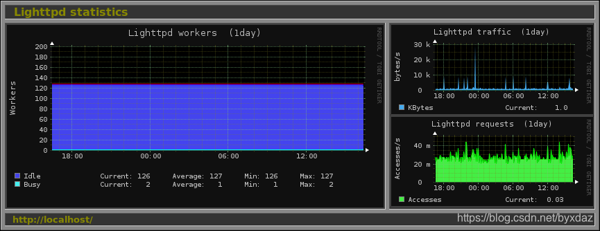 其中8080是我们在配置时默认使用的监控服务监听端口。指定自己的server地址(ip或者domain)。在刚安装完成后,监控系统中几乎没有数据,这时候监控界面的图例啥都没有,不用担心,可以等待一两个小时,这样监控图便能很明显了。