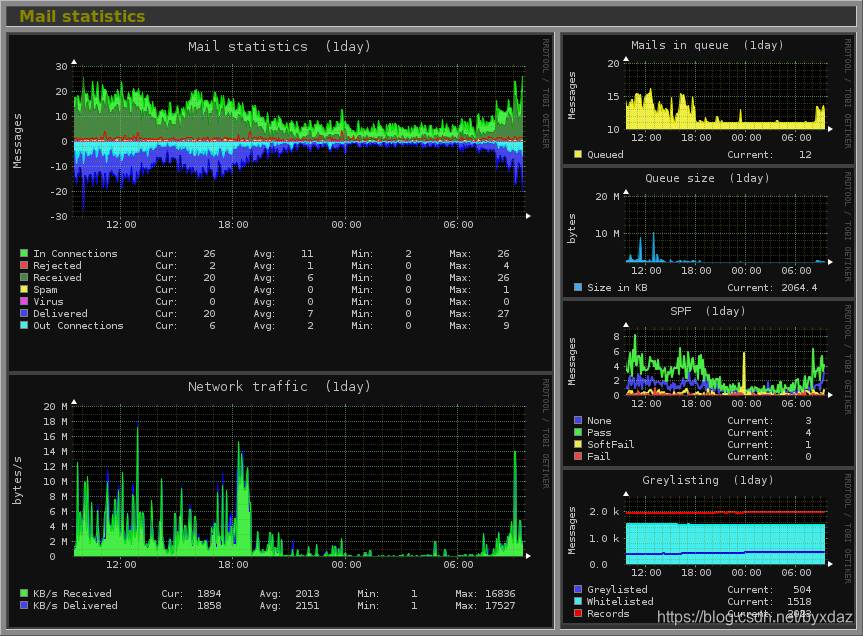 显示MTA Mail的统计数字,包括输入连接和输出连接。