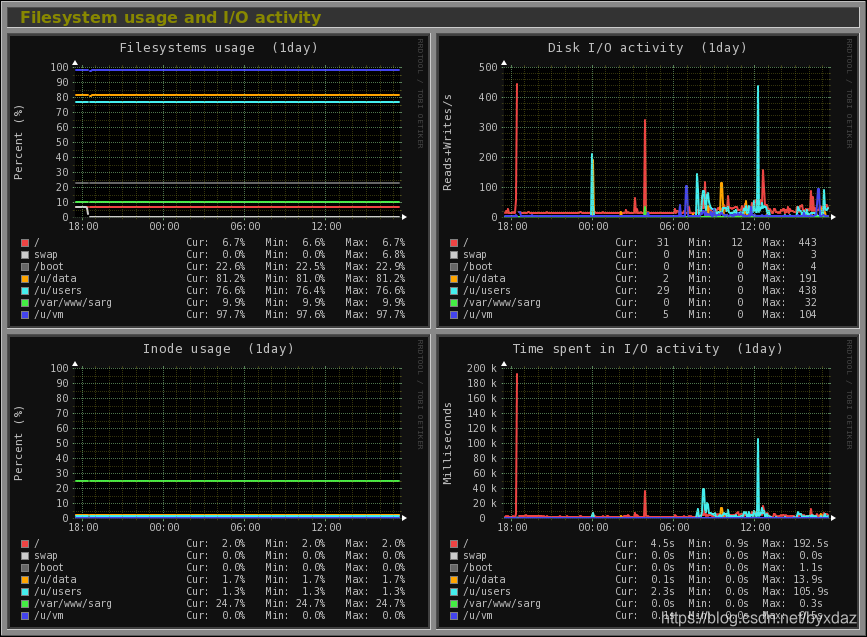 监测文件系统的使用情况和文件系统的输入/输出活动。