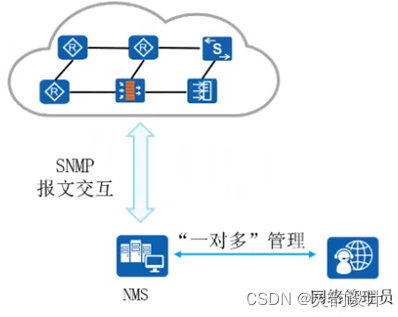 SNMP的基本思想:为不同种类的设备、不同厂家生产的设备、不同型号的设备,定义为一个统一的接口和协议,使得管理员可以是使用统一的外观面对这些需要管理的网络设备进行管理。