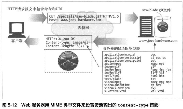 Web服务器会为所有HTTP对象数据附加一个MIME类型。当Web浏览器从服务器中取回一个对象时,回去查看相关的MIME类型,看看它是否知道应该如何处理这个对象。