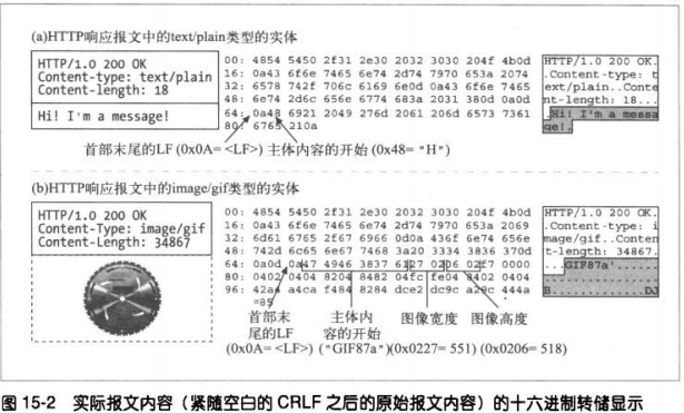 空行之后就是可选的报文主体了,其中包含了所有类型的数据。请求主体中包括了要发送个web服务器的数据;响应主体中装载了要返回给客户端的数据。起始行和首部都是文本形式且都是结构化的,而主体则不同,主体可以包含任意的二进制数据和文本。