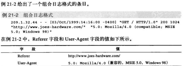 在常用日志格式上增加了两个字段:User-Agent和Referer。
