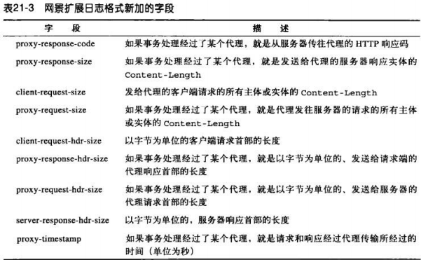 扩展了常用日志格式,以支持与代理和web缓存这样的HTTP应用程序相关的字段。