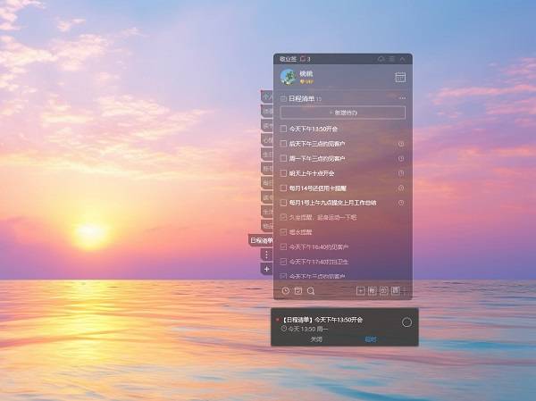 你可以将它的界面设置为一直悬浮在电脑桌面上,这样无论何时何地,你都能随时查看和更新待办事项。更妙的是,它支持创建多个待办分类,让你能够清晰地分类管理工作、生活、学习中的各项事务。当你逐条记录待办事项时,只需简单以文字形式注明执行的时间点,智能系统就会自动为你设置好相应的年月日、时分的定时提醒时间,让你无需再费心去手动设置。