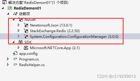 2、通过Nuget引用StackExchange.Redis.dll、Newtonsoft.Json.dll、需要用到配置文件读取,引用System.Configuration.ConfigurationManager.dll