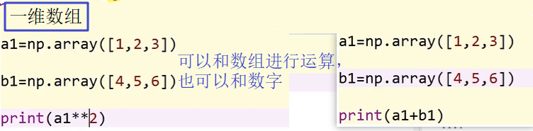 数组对象可以使用Python的原生算数运算符 +、-、*、/、//、%、**(幂)