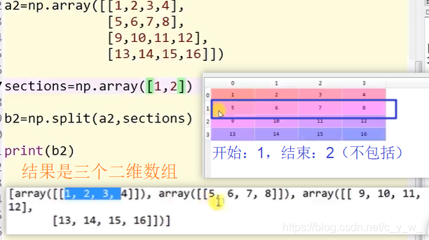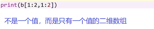 行和列都是切片,结果是二位数组;行或列是切片,另一个是数,结果是一维数组