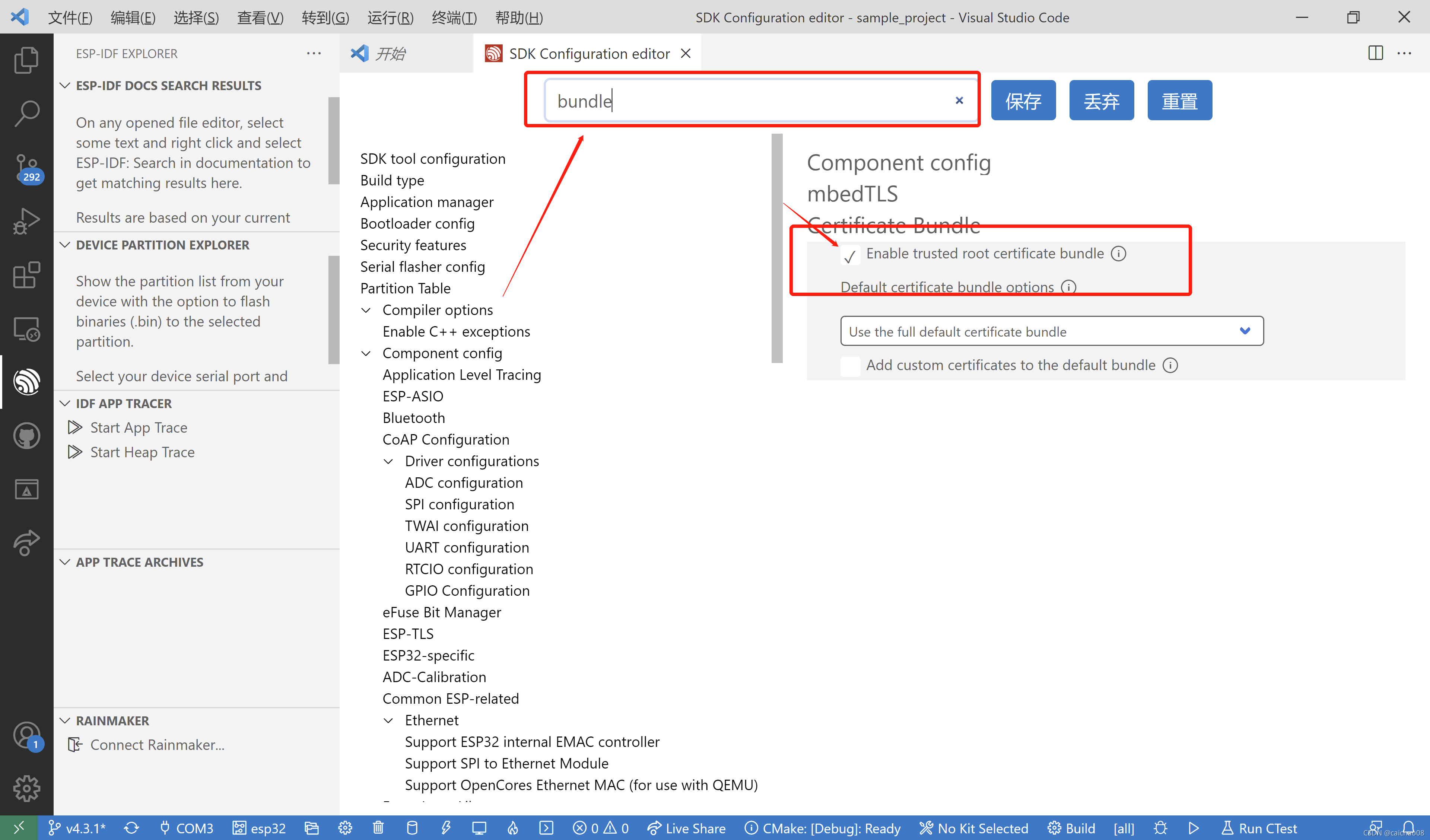 注意:采用VScode安装的环境,在编译的时候,一定要先把配置里面的certificate_bundle前面的复选项给去掉,不然编译就会不通过,这个非常的重要。