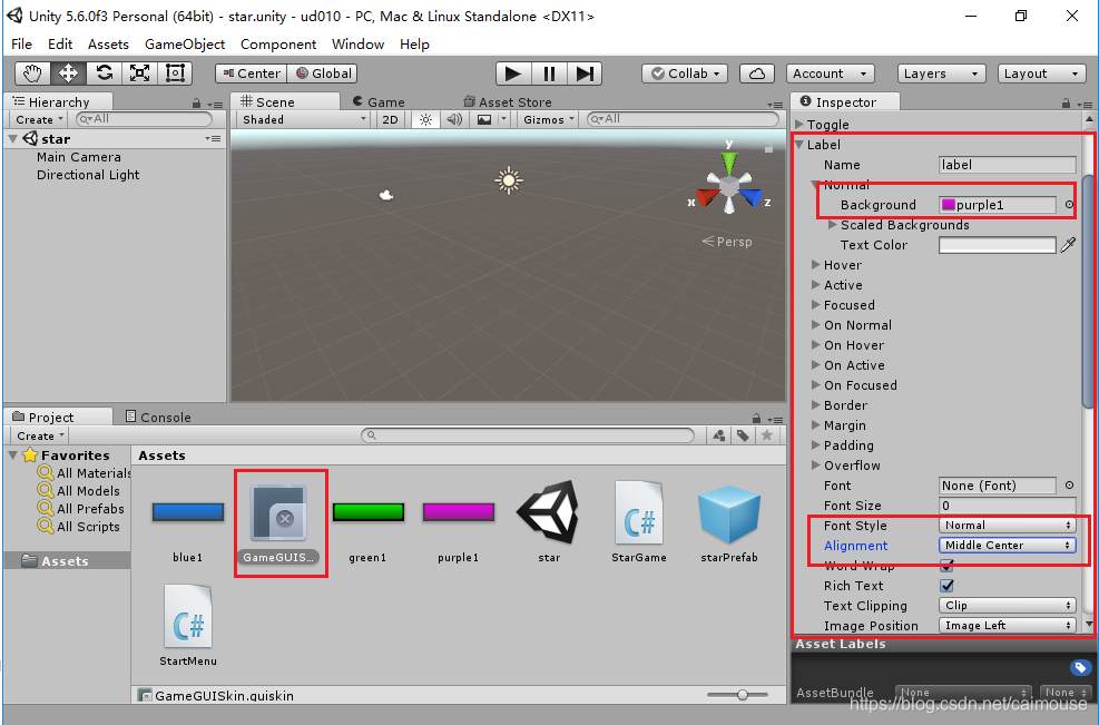 但是这时可以看到,这个计数显示有点难看,那么就来美化一下吧。由于它是采用skin.label定义的,那么只要设置GUISkin类,就可以改变标签的样式,因此如下图进行编辑: