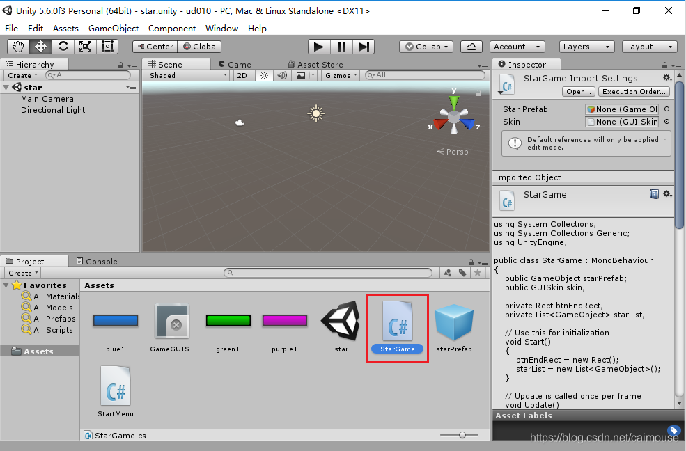 要创建这个label,如下图打开StarGame.cs脚本文件: