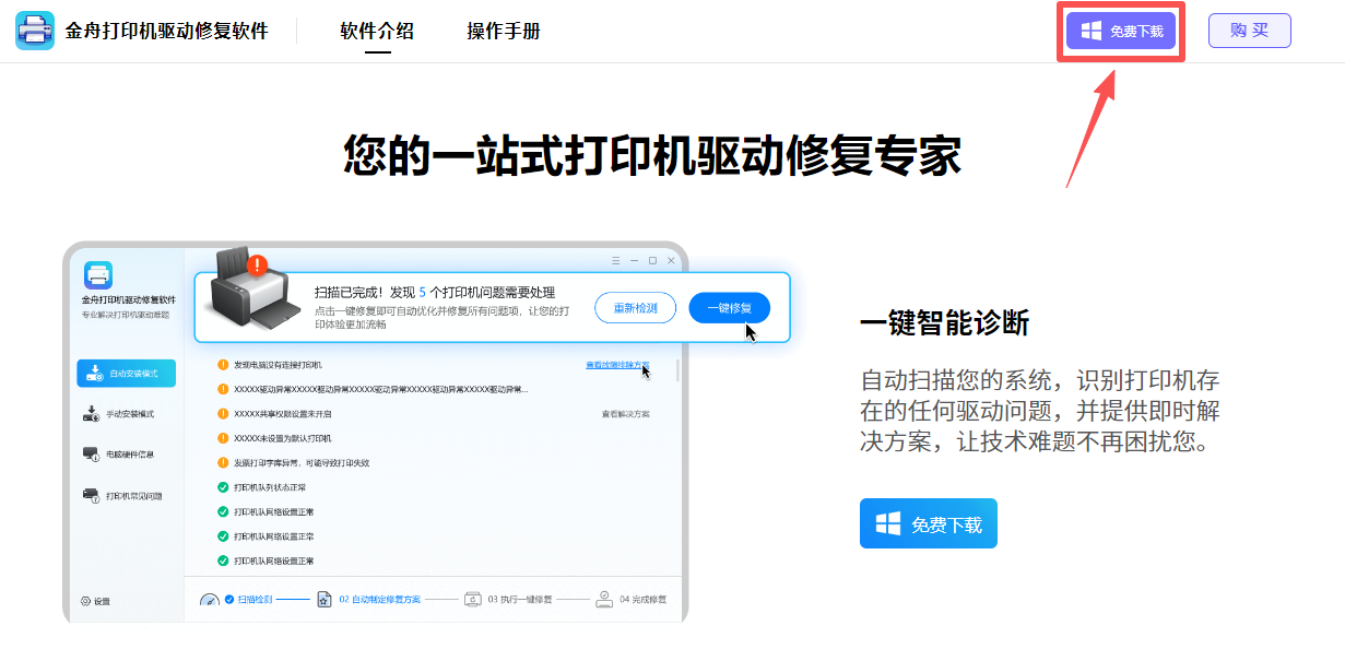 方案2:第三方工具:金舟打印机驱动修复软件(打印机新手必备)