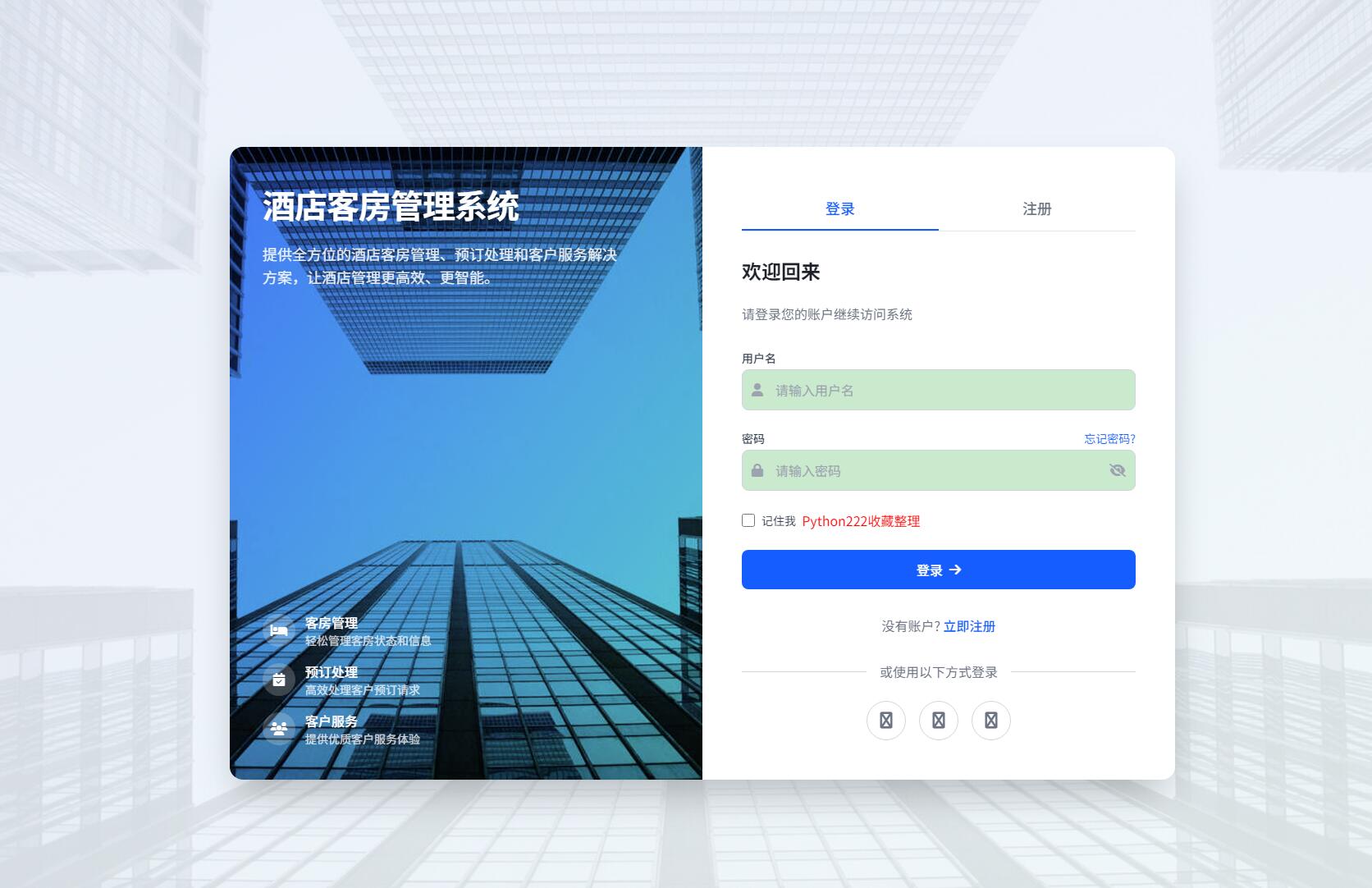 大家好,我是python222_小锋老师,看到一个不错的基于Python的Flask酒店客房管理系统【论文+源码+SQL脚本】,分享下哈。