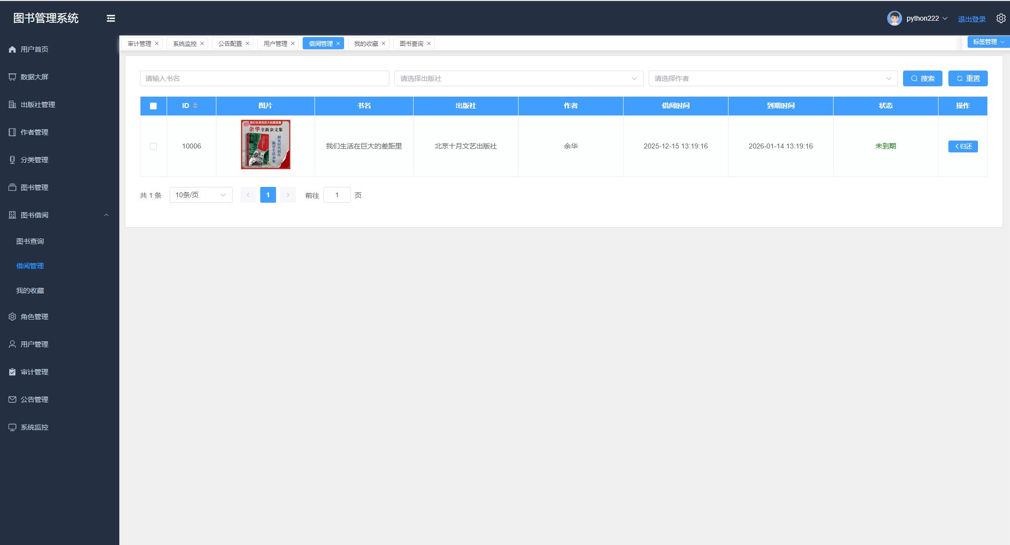 大家好,我是java1234_小锋老师,看到一个不错的基于Python的Flask+Vue3在线图书(图书借阅)管理系统【论文+源码+SQL脚本】,分享下哈。