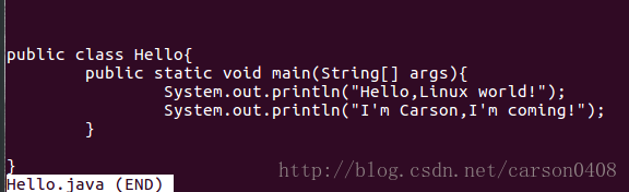 3.less:查看文件内容,~$less Hello.java 回车可看到如下内容,即该文件的内容