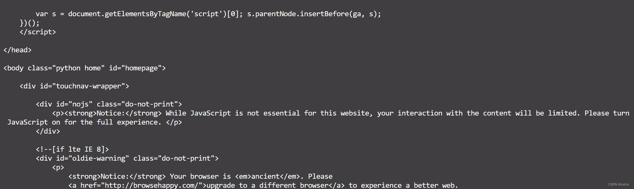 以上述代码为例,只有了两行代码就完成了对python官网的抓取,输出网页源码