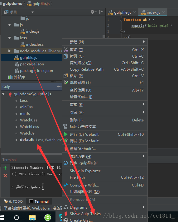 5、使用webstorm运行gulp任务