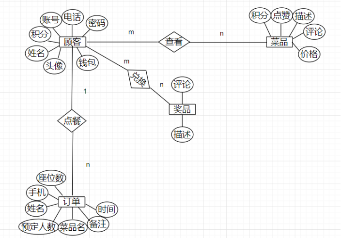 斑鱼馆点餐系统 因为有一个设计的要求,我们自己要选一个小项目去完成。本人就选了一个叫做“斑鱼馆”点餐系统的小项目。学艺不精,不喜勿喷。首先,肯定是要解餐馆点餐流程的。大概分成了已下几个小步骤:(1)数据库设计要符合范式要求。(2)浏览、查询菜品,查看菜品详情(3)浏览评论,发布评论,点赞(4)实现登录、注册功能。(5)实现订位下单功能。明白功能需求:浏览、查询菜品、查看菜品详情;浏览、发布评论,查看评论,统计评论数;各个菜品点赞;实现登录、注册功能;实现下单功能;设置用户头像;调整音乐;积分兑换各个奖品;用户