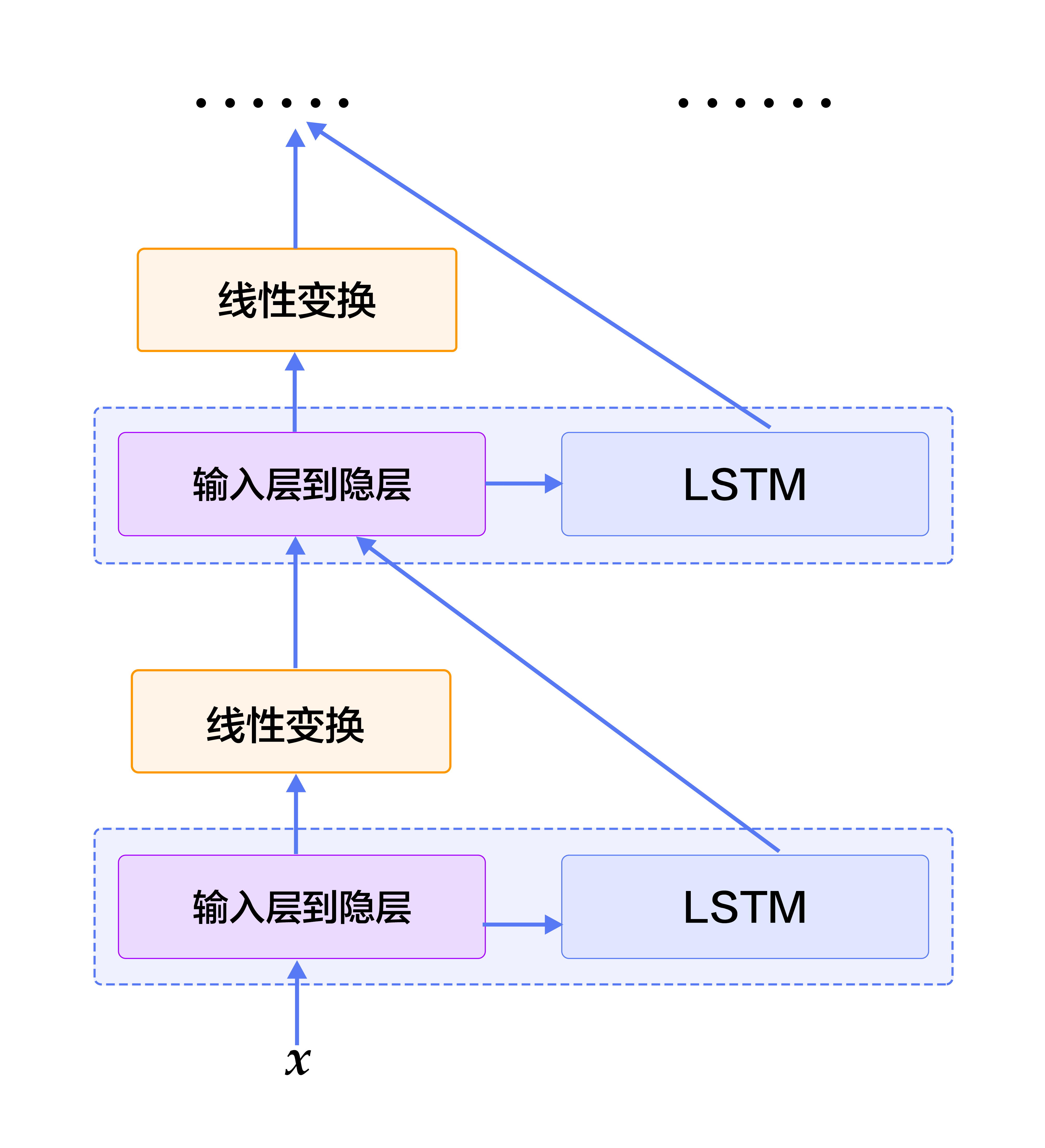 尽管LSTM沿时间轴展开后等价于一个非常“深”的前馈网络,但由于LSTM各个时间步参数共享,t−1时刻状态到t时刻的映射,始终只经过了一次非线性映射,也就是说单层LSTM对状态转移的建模是 “浅” 的。