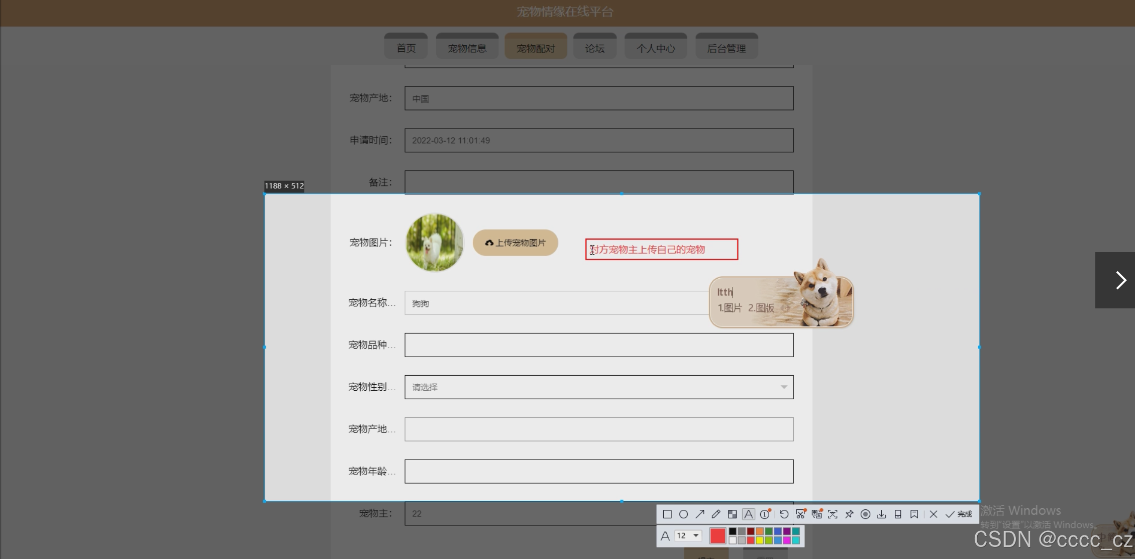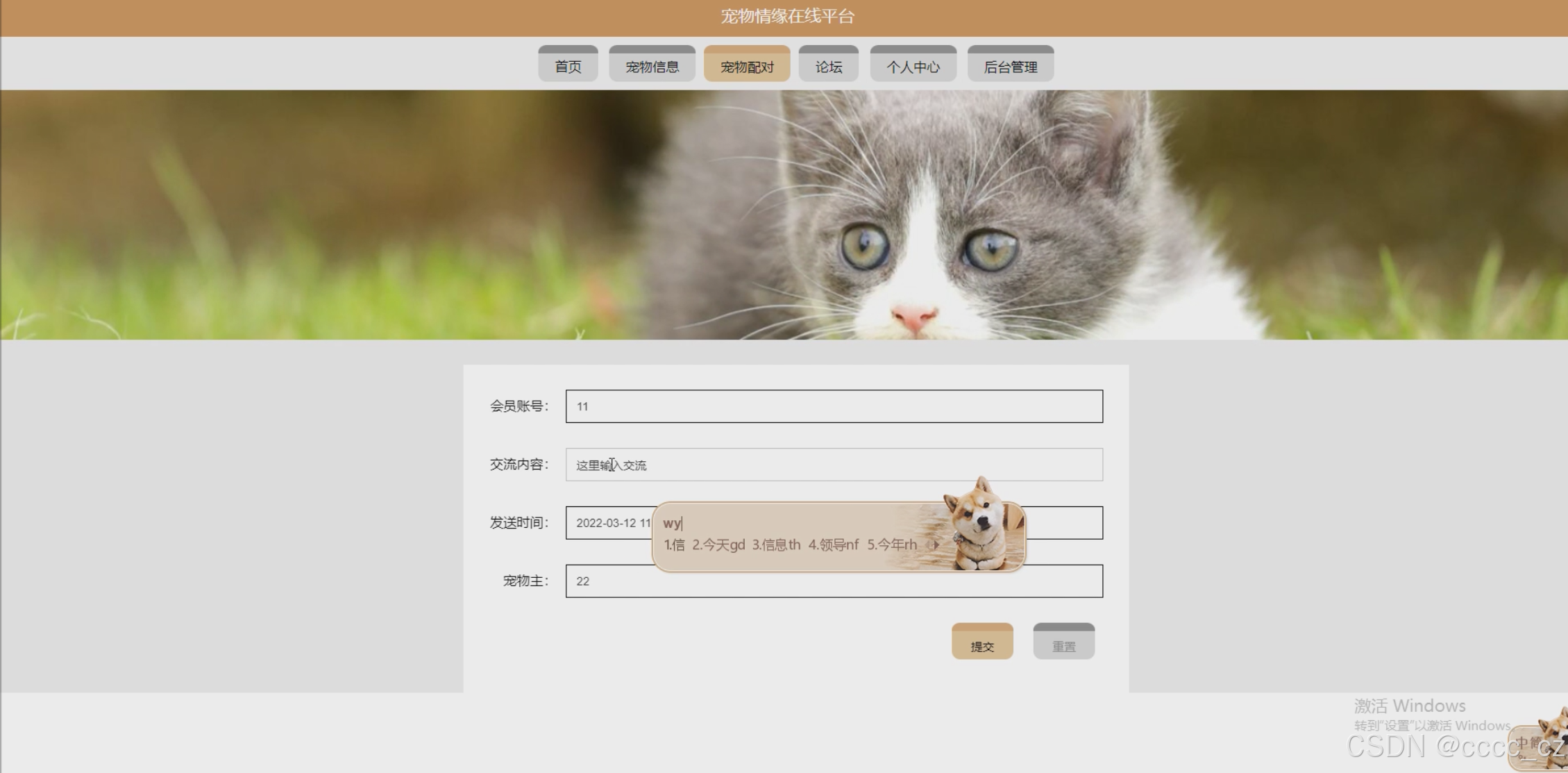 - 智能匹配:根据用户的宠物信息和兴趣爱好,平台进行智能匹配,推荐合适的宠物情缘。