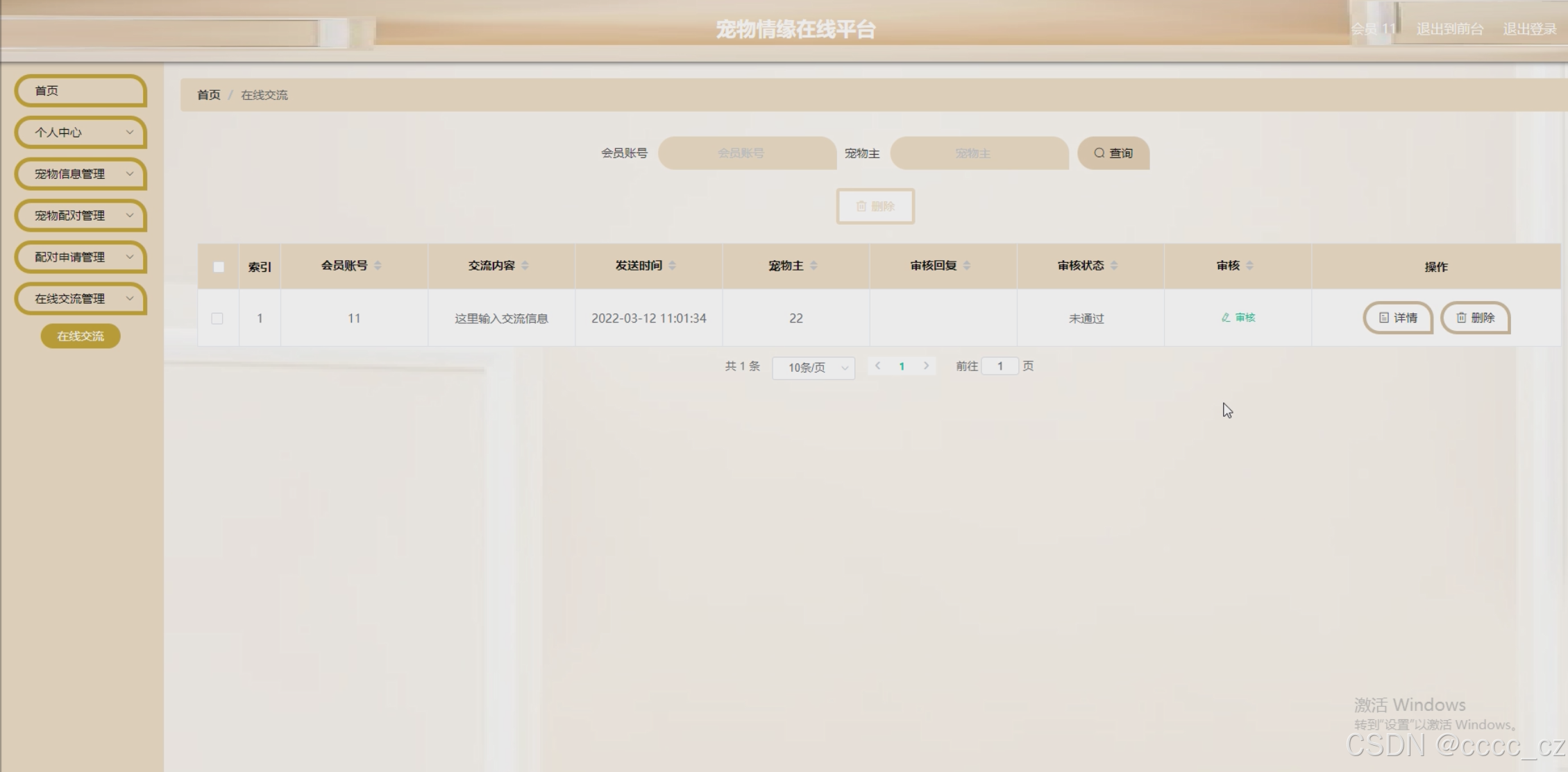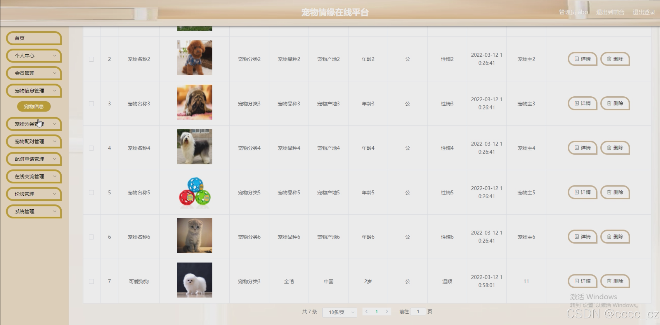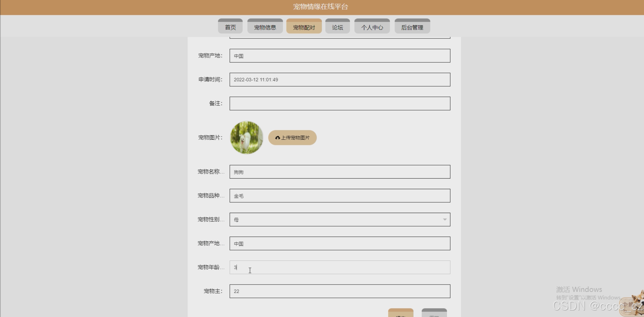 - 宠物信息展示:平台会展示所有会员发布的宠物信息,方便其他用户浏览和了解。