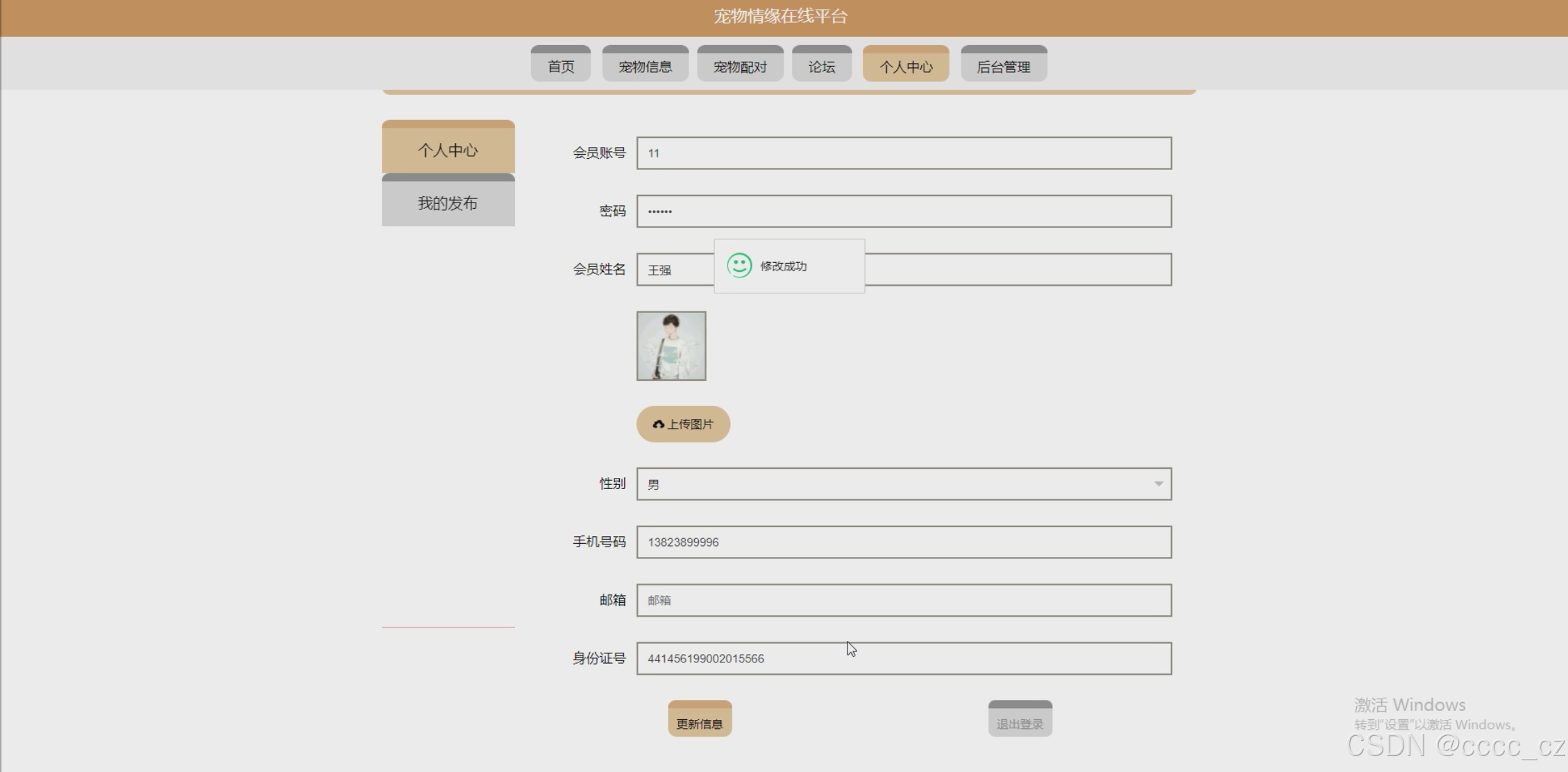 - 个人信息管理:会员可以完善自己的个人信息,包括姓名、联系方式、兴趣爱好等,以便其他用户更好地了解自己。
