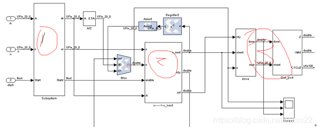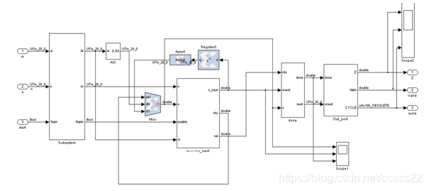 注意,由于本系统主要是使用system generator设计实现的,没有涉及到具体的代码,所以这里只能对模块进行介绍说明,这里对牛顿法进行介绍。