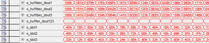 DCT变换过程中,会有大量的小数等情况,因此,在FPGA中做处理的时候,会有误差,不过DCT变换有个较大的特征,就是每个8*8块的DCT变换后都有一个极大值,所以上面的仿真结果基本正确。
